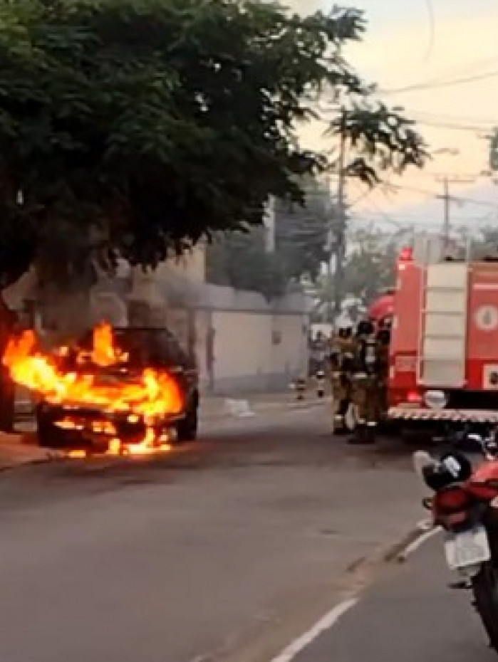 Um carro pegou fogo, por volta das 17h30, no bairro Jardim Excelsior, em Cabo Frio. As chamas consumiram o veículo na Rua Geraldo de Abreu, próximo à Igreja Batista.