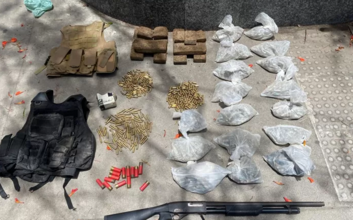O material apreendido foi encaminhado para a 126ª Delegacia de Polícia (126ª DP), onde será registrado um boletim de ocorrência e iniciada a investigação para identificar os responsáveis pelo armazenamento das armas e drogas.