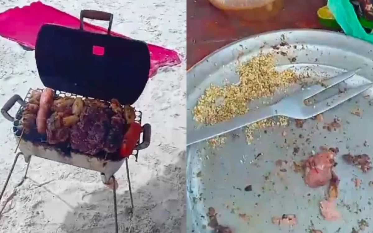 Churrasco na faixa de areia Reprodução