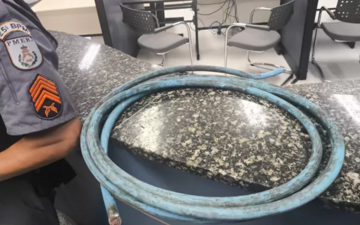 A Polícia Militar apreendeu aproximadamente cinco metros de cabo de fio grosso na Rua da Luz, no bairro Braga, em Cabo Frio, durante a madrugada desta quinta-feira (20). A equipe foi acionada para verificar uma ocorrência de furto de fios no topo de um poste, mas, ao chegar ao local, não encontrou movimentação suspeita.