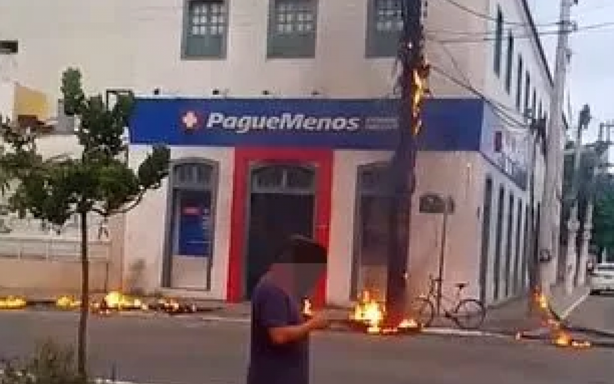 Conforme as imagens, as chamas se espalharam pela estrutura do poste e atingiram parte da calçada e da rua, gerando preocupação entre pedestres e comerciantes da região.