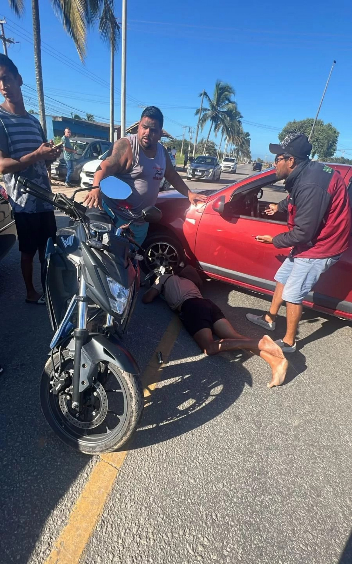 Colisão entre motocicleta e carro é registrada na Rodovia Amaral Peixoto, em Tamoios, Cabo Frio