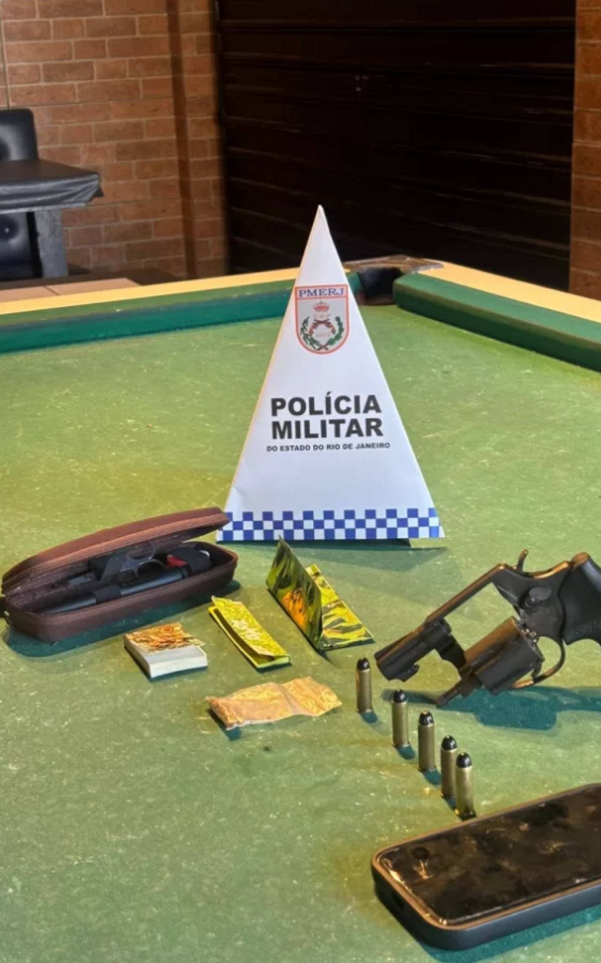 Durante as buscas, os policiais encontraram e apreenderam um revólver da marca Taurus, modelo RT 85, calibre ponto 38, com cinco munições intactas. O acusado, identificado pelas iniciais W.L.B.D.S., foi conduzido à 126ª Delegacia de Polícia (126ª DP), onde foi autuado em flagrante com base no artigo 14 do Estatuto do Desarmamento. Ele permanece preso à disposição da Justiça.