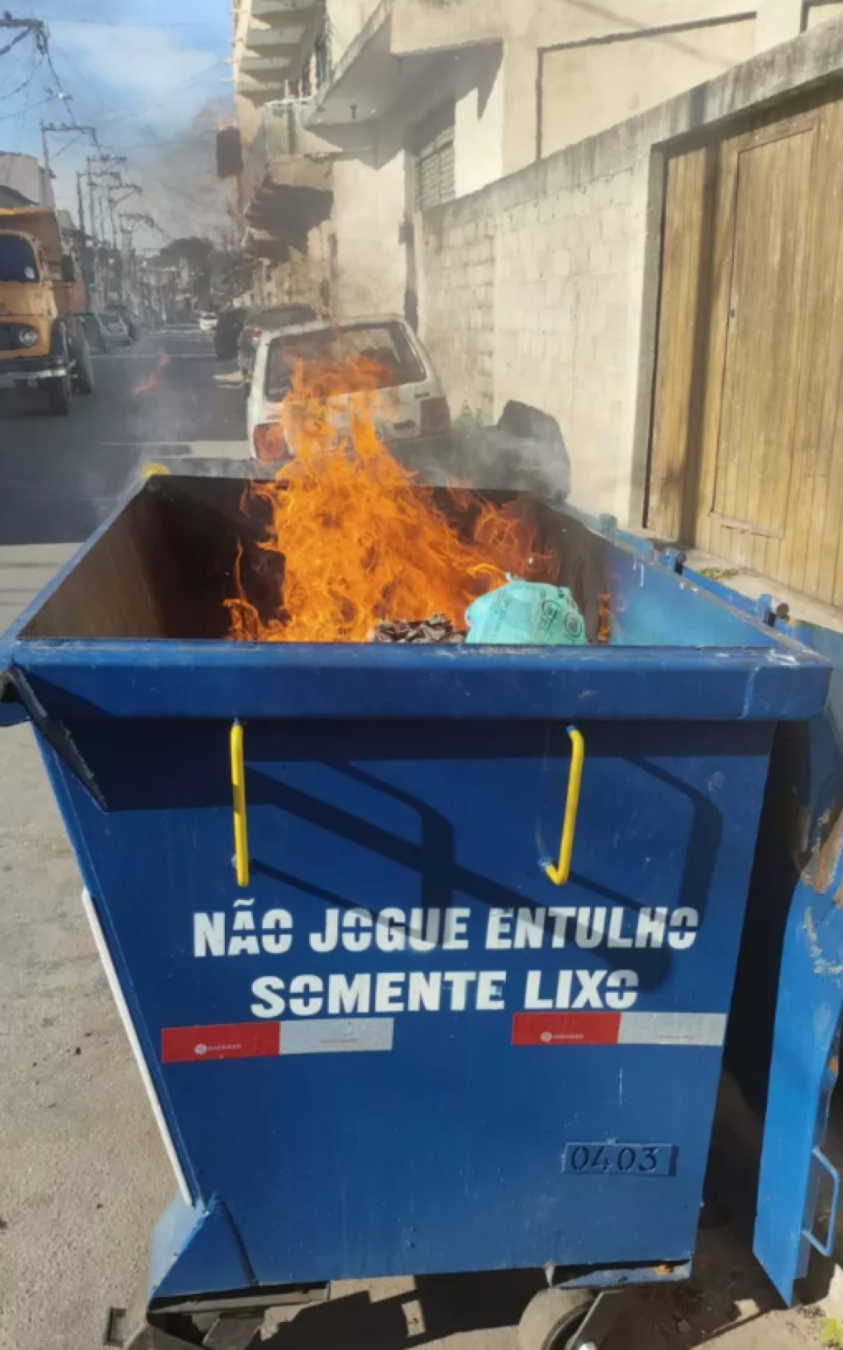 A ação de colocar fogo no lixo dentro do contêiner, além de colocar vidas em risco, pode causar danos ao equipamento, atrapalhar a rotina da coleta e até causar acidentes com moradores ou trabalhadores da limpeza urbana.