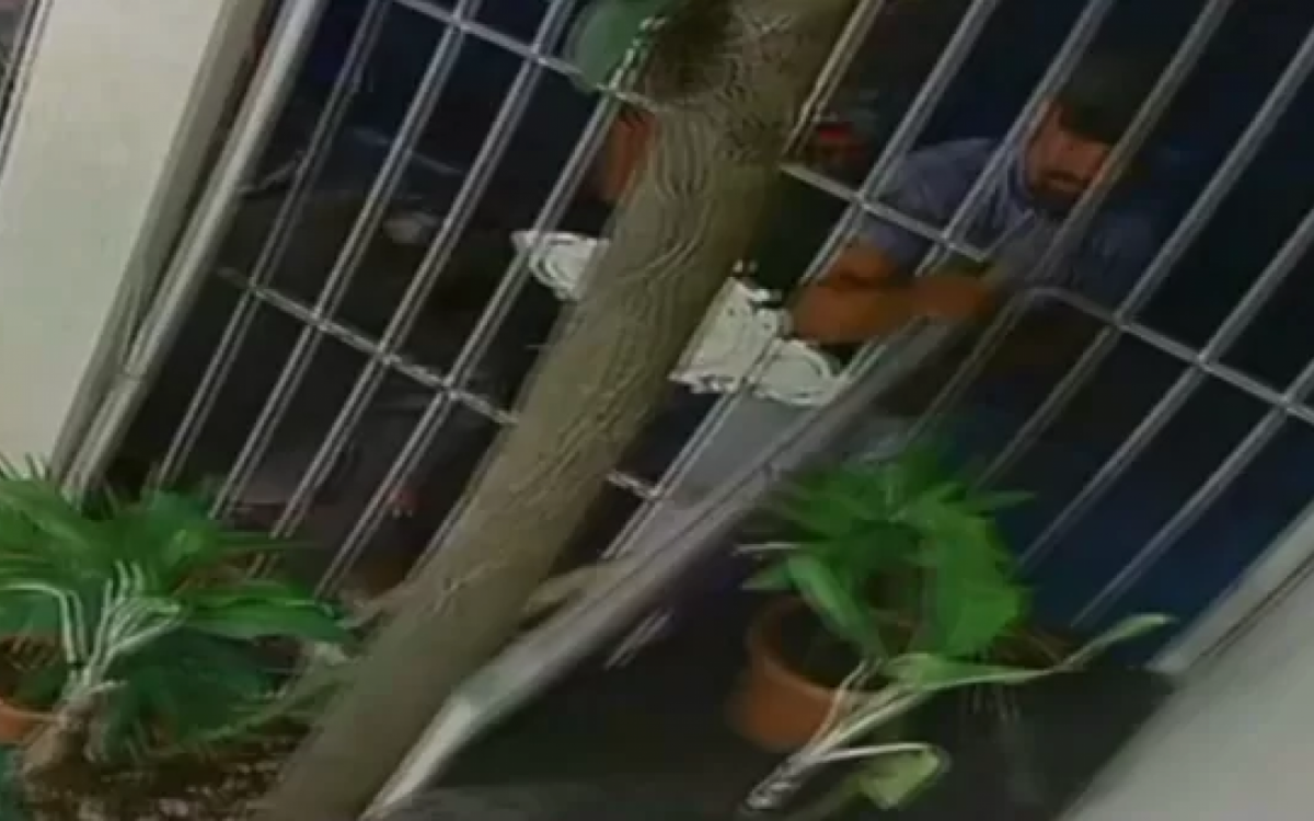 Casal em situação de rua é flagrado furtando portaReprodução/Câmera de segurança