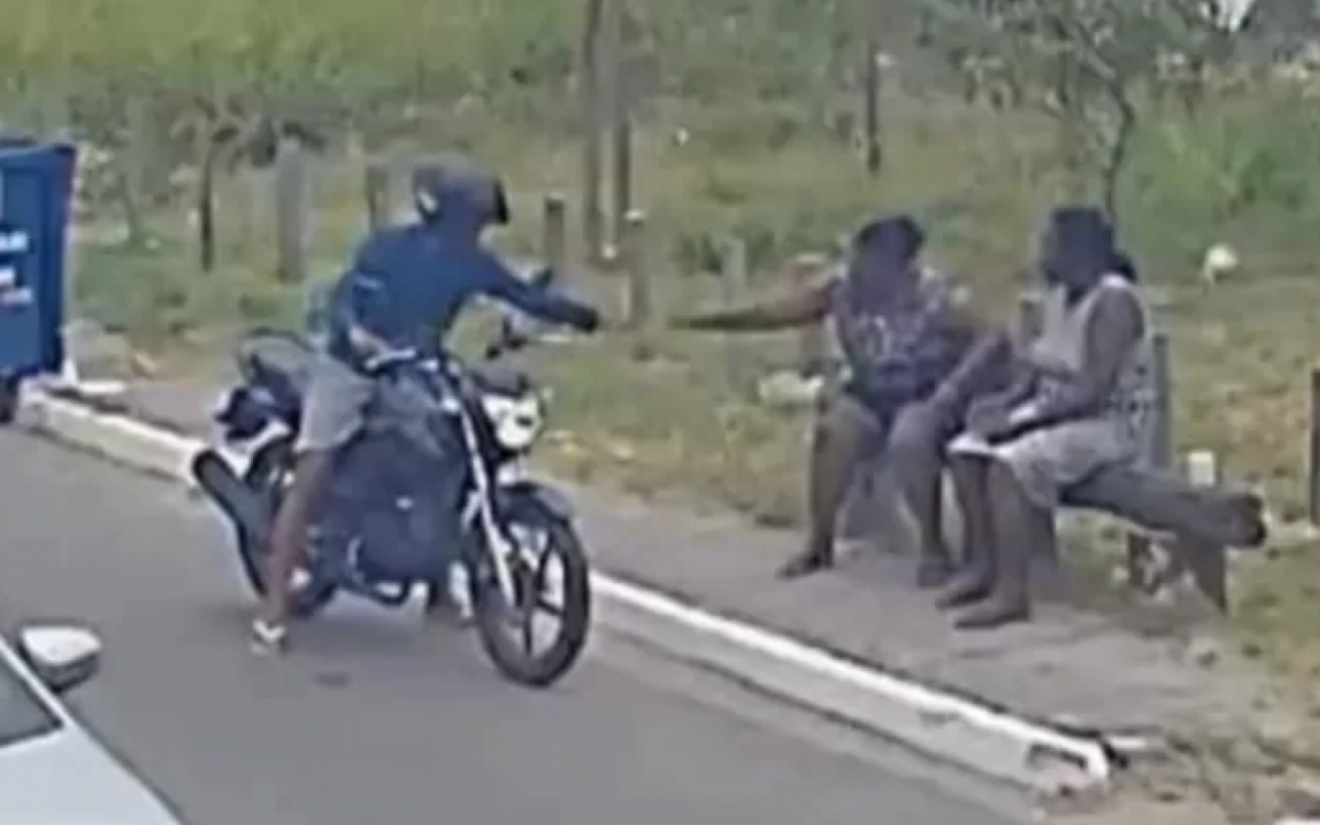 Cabo Frio - Um assalto foi registrado na Rua Vitória, no bairro Peró, em Cabo Frio, nesta semana. Imagens mostram um indivíduo em uma motocicleta abordando duas pessoas que estavam sentadas em um banco na via, em plena luz do dia.