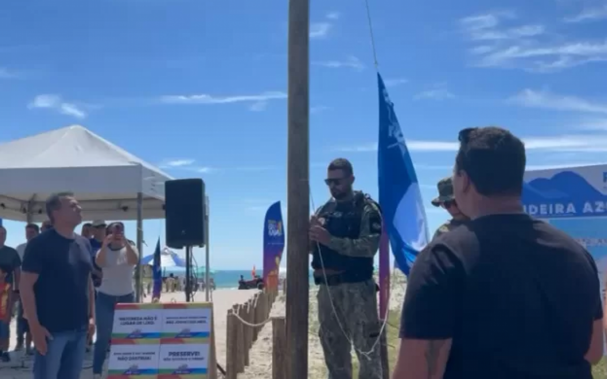 Cerimônia oficial de hasteamento da Bandeira Azul na Praia do FogueteReprodução