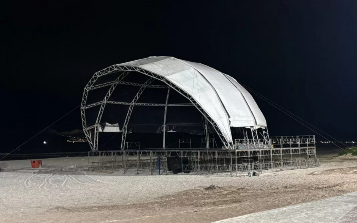 Cabo Frio - A estrutura do palco para o Réveillon 2026 começou a ser montada na última quarta-feira (17) na Praia do Forte, e a montagem também começou no Pontal nesta sexta (19).