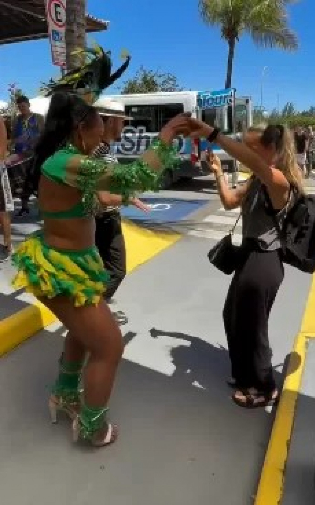A recepção não se limitou aos estrangeiros. Turistas brasileiros que chegavam pelo aeroporto também foram acolhidos com música e animação, tornando o momento ainda mais marcante para todos que desembarcaram no terminal.