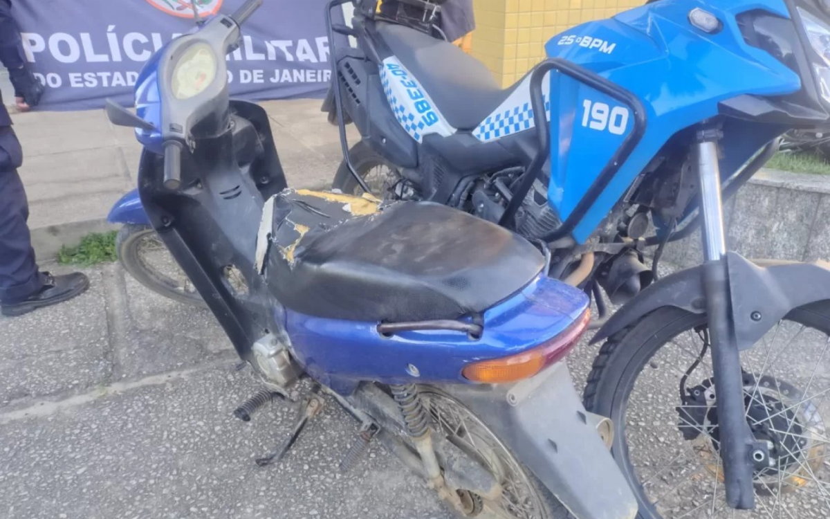 Segundo a Polícia Militar, os agentes identificaram uma motocicleta Honda Biz, de cor azul, sem placa de identificação. Ao perceber a aproximação da guarnição, o condutor tentou fugir, mas foi alcançado logo em seguida.