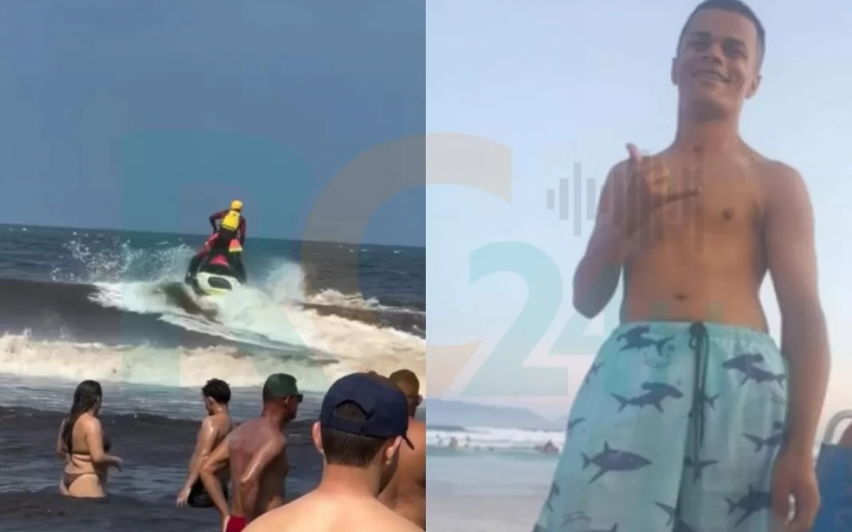 Testemunhas apontam que a força das ondas dificultou a permanência no local, e o jovem não foi mais visto.Reprodução/ RC24h