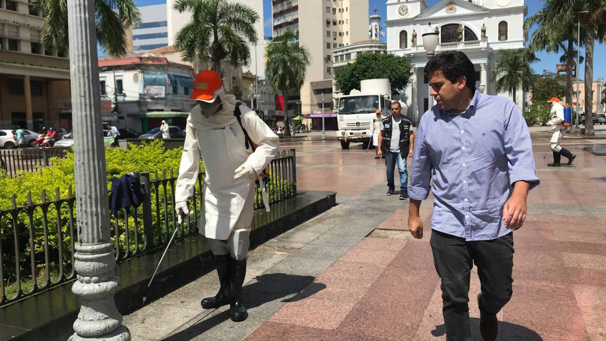 O prefeito de Campos, Rafael Diniz, acompanha a higienização da Praça São Salvador - Divulgação prefeitura de Campos