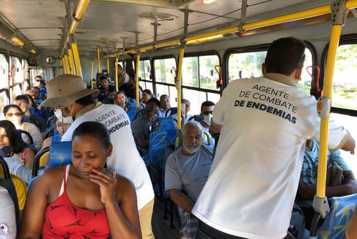 Agentes da Saúde mediram a temperatura de motoristas e passageiros de Înibus na chegada a Campos pela BR-101Divulgação prefeitura de Campos