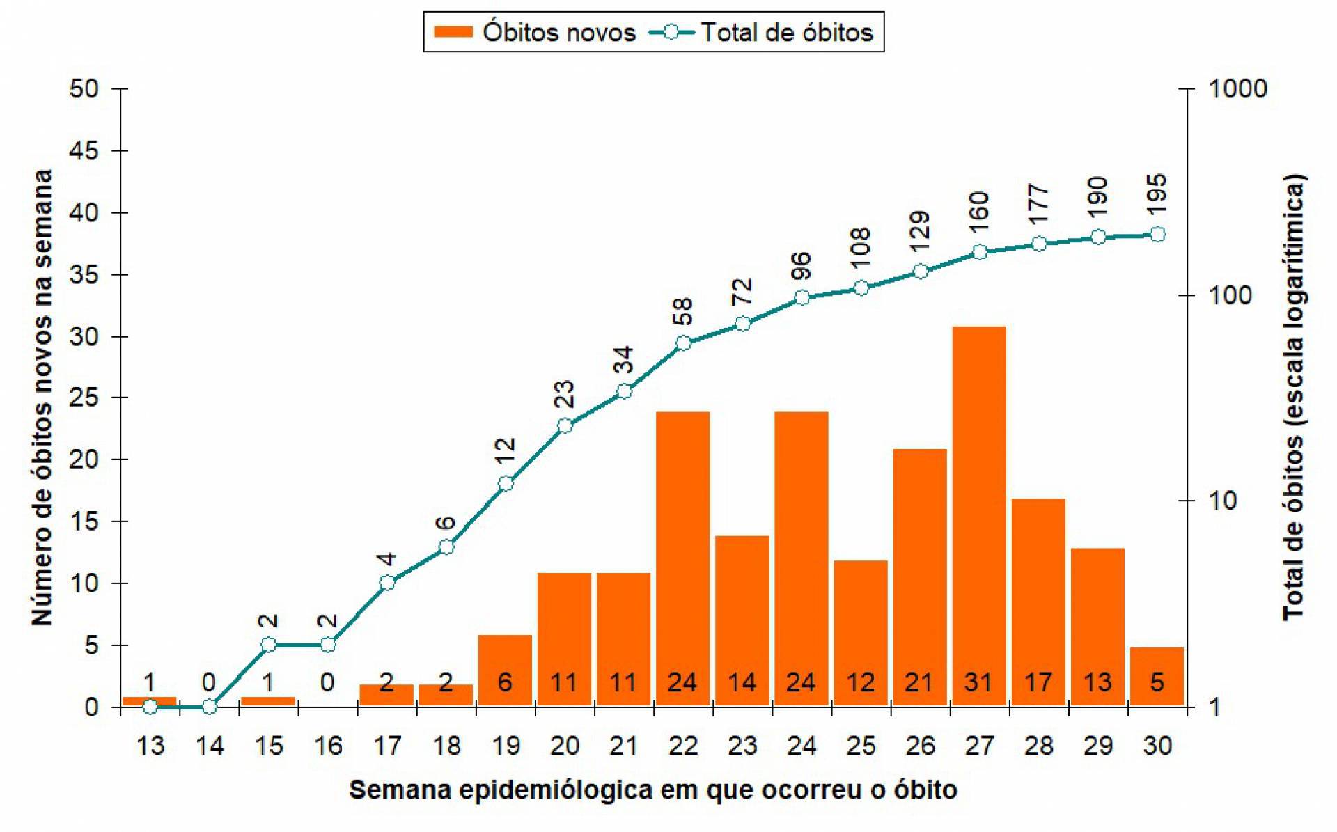 "Diante da grande demanda da equipe de Vigilância, pode ocorrer uma defasagem de tempo entre a divulgação do número e a confirmação efetiva do caso. Em função disso, sempre primando pela transparência, foi realizada uma concentração de esforços para atualizar o número efetivo de óbitos das últimas semanas", diz o texto da prefeitura que acompanha o boletim, que também veio acompanhado de gráficos (abaixo) que mostram a evolução da curva de mortos pelo coronavírus desde o início da pandemia.