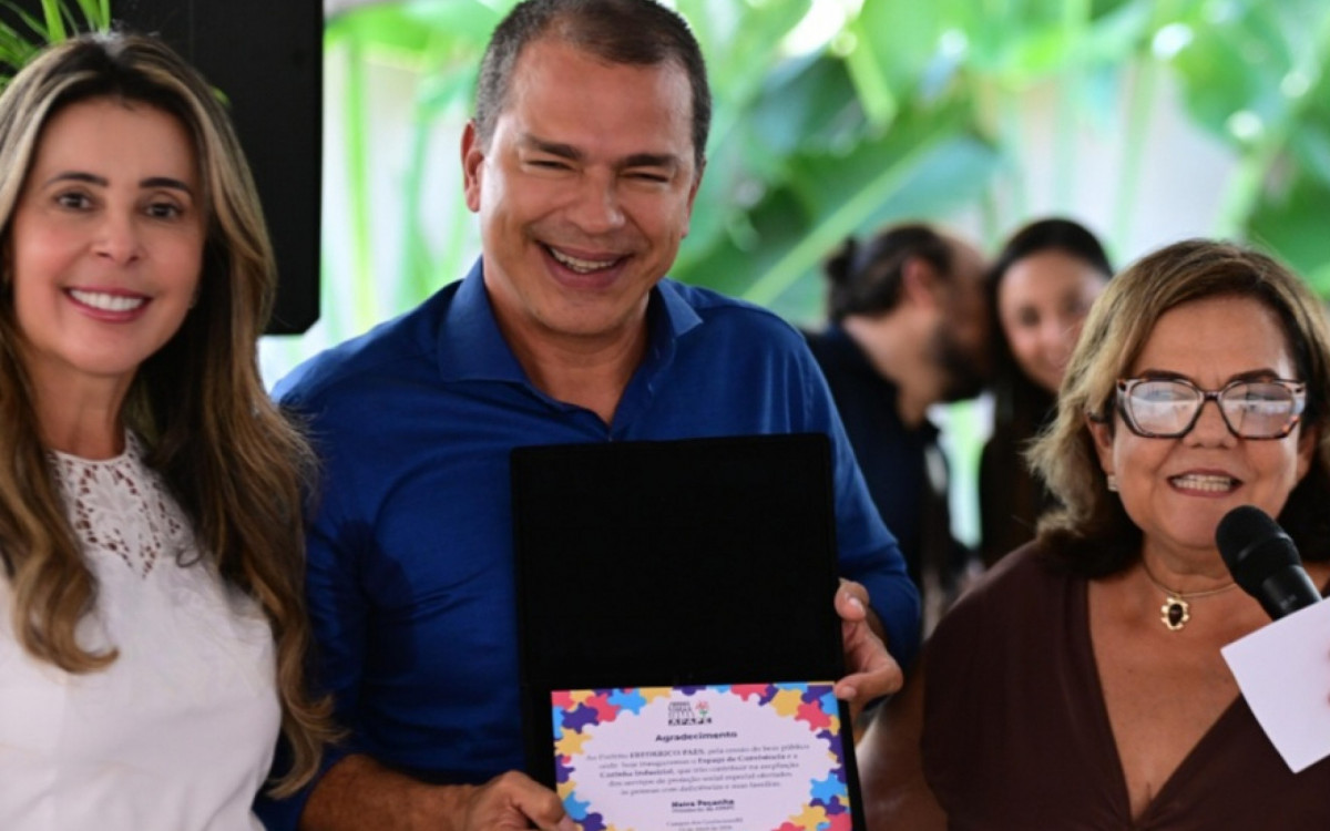A primeira-dama Carla Paes e o prefeito Frederico, foram recepcionados pela presidente da Apape, Naira Peçanha Foto César Ferreira/Divulgação