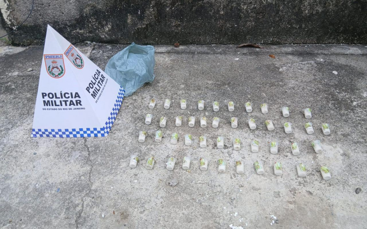 Casimiro de Abreu - Policiais militares do 32º BPM localizaram 44 pinos de cocaína durante patrulhamento no Loteamento São João, em Casimiro de Abreu. O material estava escondido atrás de um muro, no ponto onde um suspeito foi visto momentos antes da chegada da viatura.