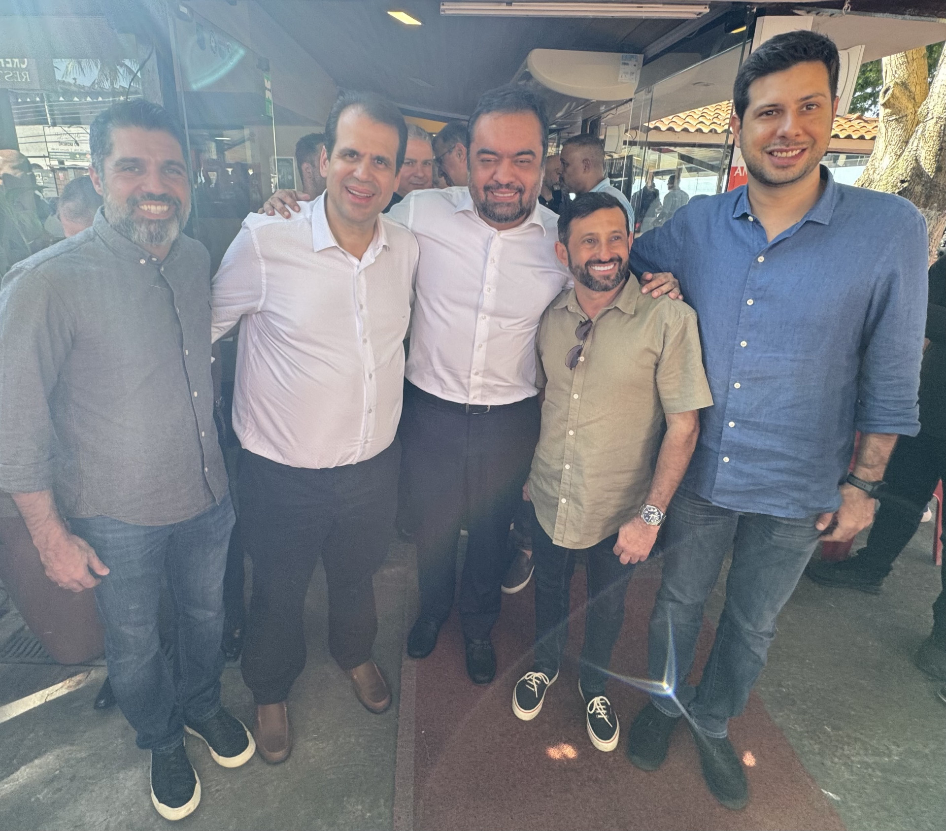 Em registro do almoço oferecido ao governador Cláudio Castro pelo deputado Áureo Ribeiro, na Ilha do Governador: o vereador Diego Faro, o deputado federal Áureo Ribeiro, o governador Cláudio Castro, o deputado estadual Giovani Ratinho e o secretário de Esporte Rafael Picciani. O clique é exclusivo deste colunista - Andrei Lara