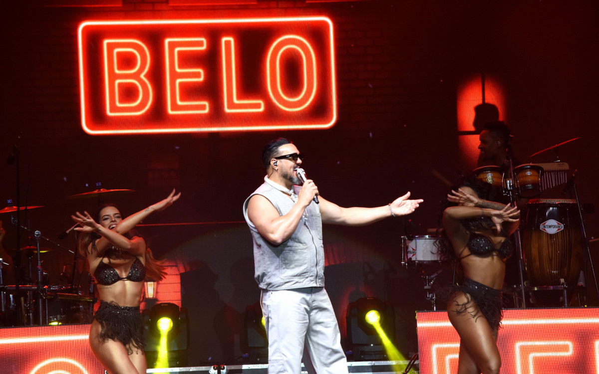 Belo lota show no aniversário de Angra, mas no seu Instagram troca a cidade por "Arraial do Cabo"