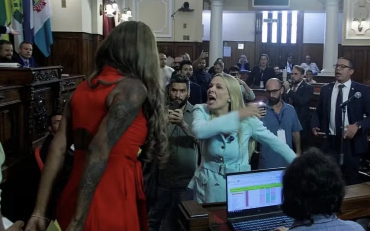 Benny Briolly e Fernanda Louback discutem no plenário durante a votação do título de Cidadã Niteroiense para Ludmilla, em sessão que dividiu Niterói e rachou a Câmara Foto: Sérgio Gomes