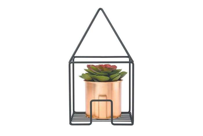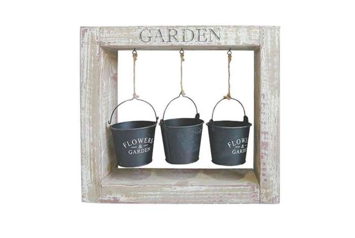 Quadro cachepot de madeira com vasos de metal, no Extra online, por R$216,48. www.extra.com.br