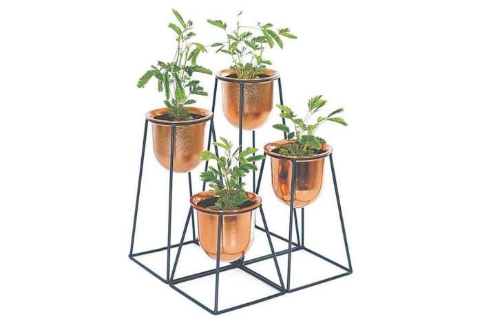 Vaso de metal cobre, modelo Casinha. Na Josefina Rosacor, por R$ 129. www.josefinarosacor.com.br