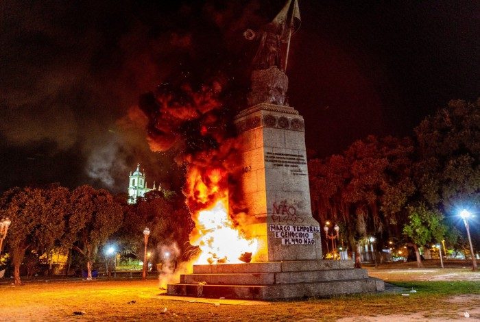 O incêndio na estátua de Pedro Álvares Cabral, na Glória, tem levantado intensos debates.