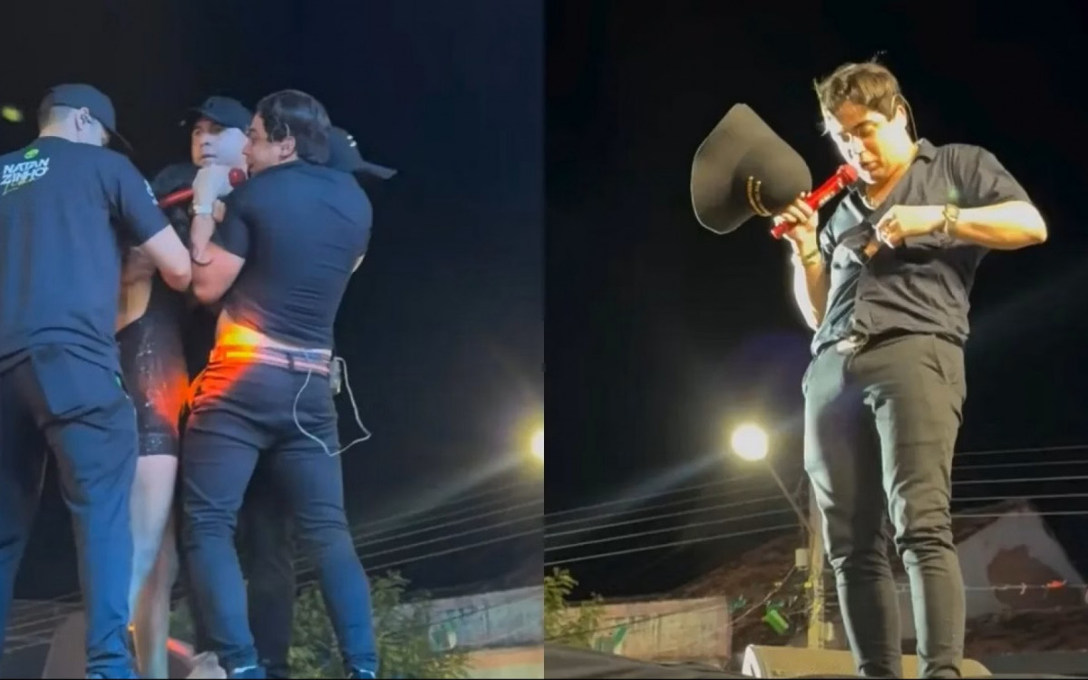 A confusão foi tanta que três seguranças da equipe precisaram intervir para conter a fã, que vestia um look preto com brilho e não parecia disposta a sair de cena. "Você está me machucando", disse Natanzinho, enquanto tinha a camisa puxada e os botões arrancados. A plateia reagiu com vaias e gritos, enquanto o cantor tentava manter a compostura em meio ao caos.