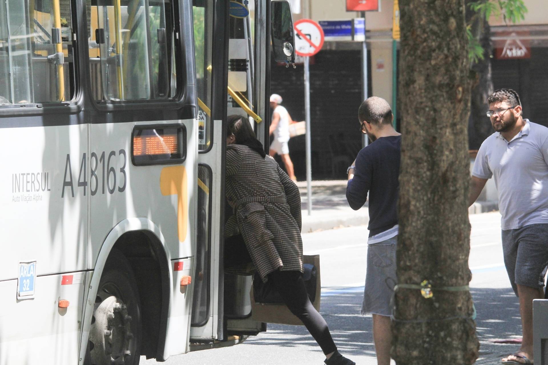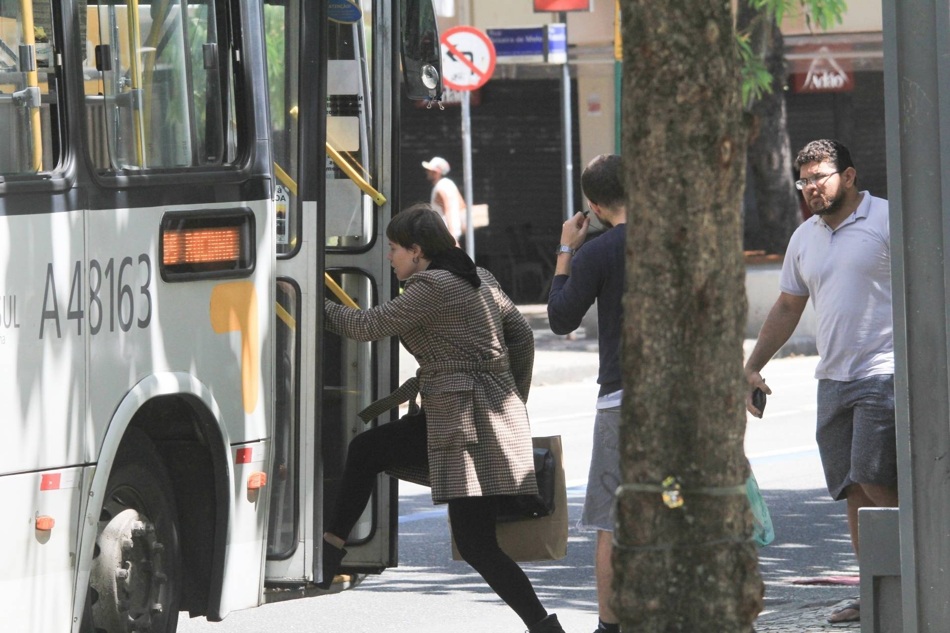 Atriz foi fotografada subindo em um ônibus. Veja fotos!
