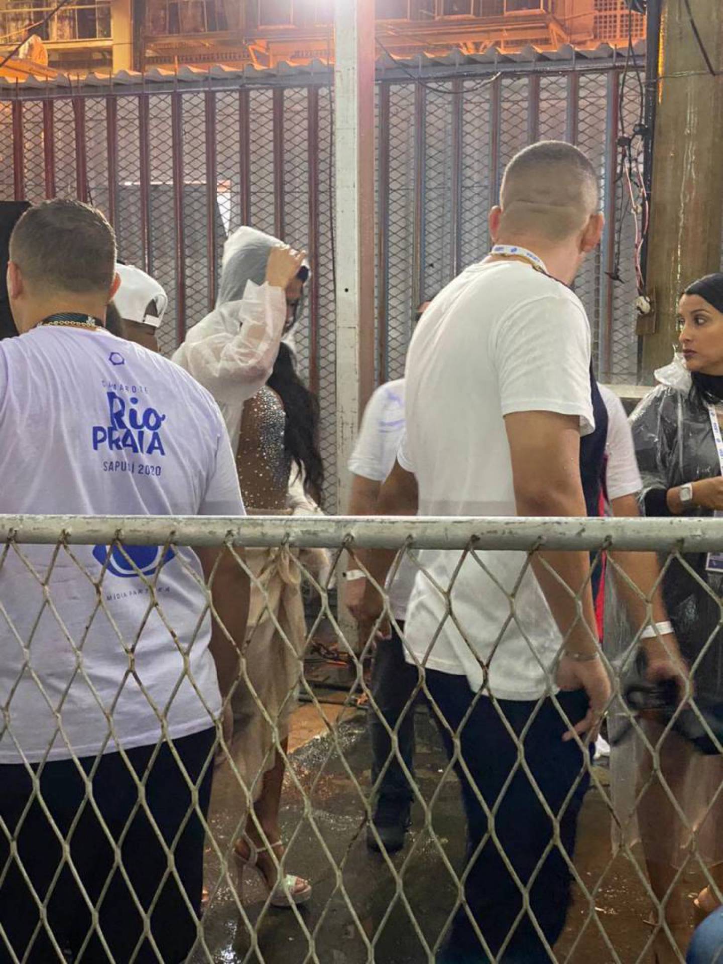 Gracyanne Barbosa chega a camarote debaixo de temporal