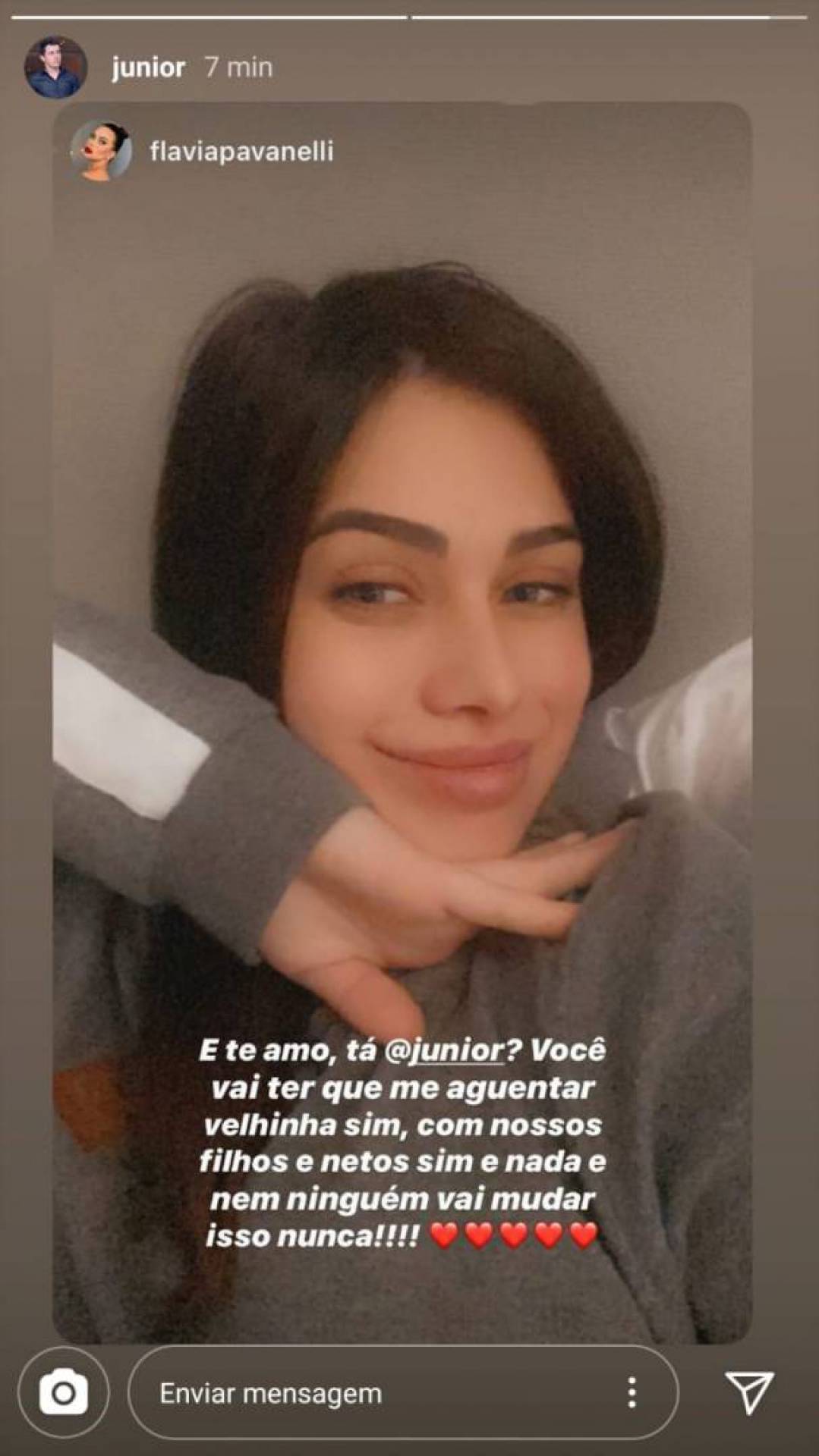 Em um último post, ela mandou um recado para o noivo: "E te amo, tá Junior? Você vai ter que me aguentar velhinha sim, com nossos filhos e netos sim, e nada e nem ninguém vai mudar isso nunca".