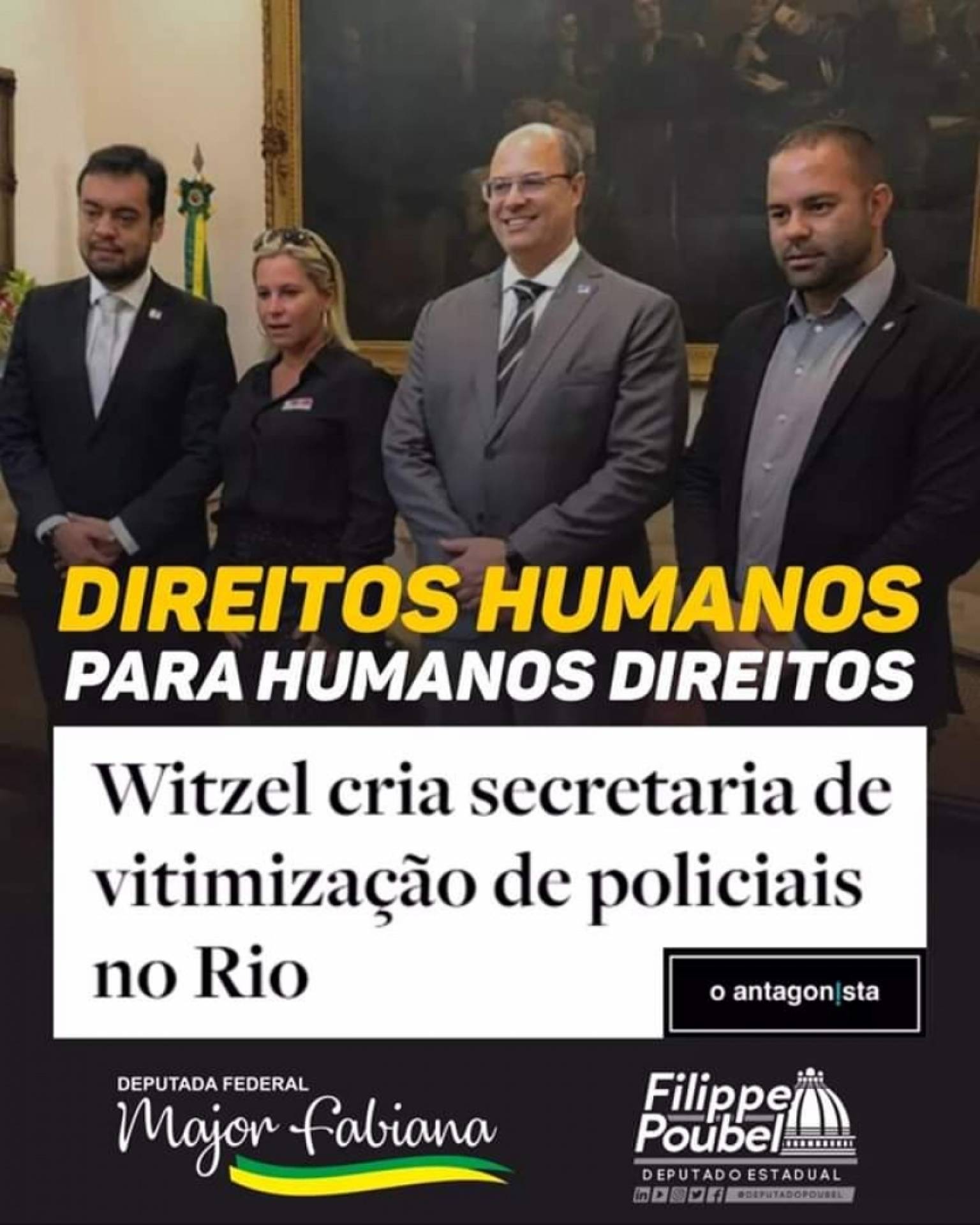 A deputada federal Major Fabiana Silva (PSL-RJ) está cotada para comandar a Secretaria de Vitimização de Policiais anunciada pelo governador Wilson Witzel (PSC) nesta quinta-feira em um evento, em São Paulo.
