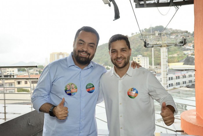 Cláudio Castro (PL) e Thiago Pampolha (União Brasil) visitam as obras do Teleférico do Alemão.ROGERIO SANTANA / Divulgação