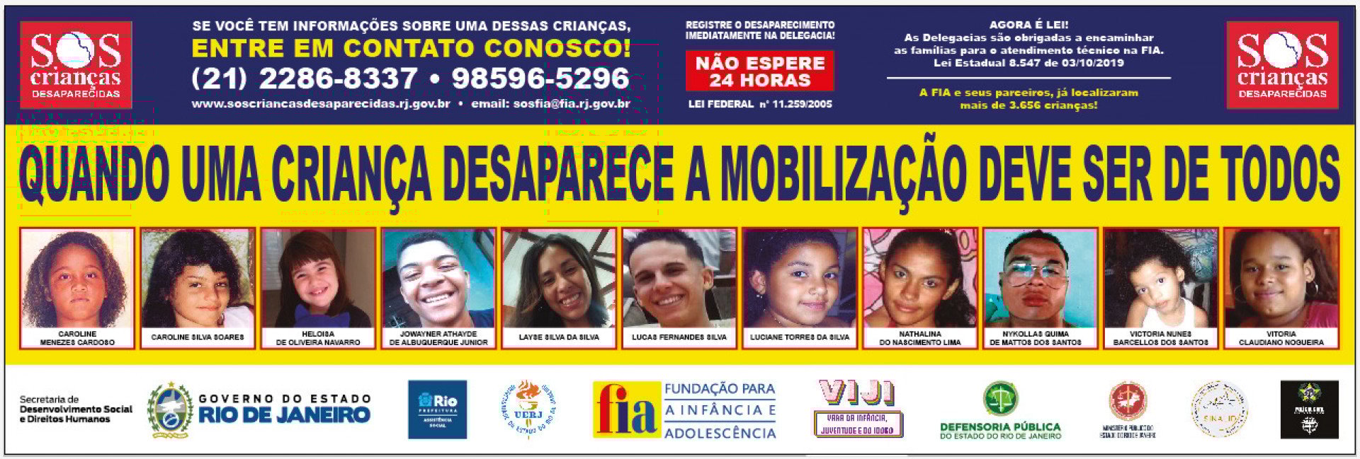 “Ao unir forças com o Clube Regatas Flamengo, um dos principais times de futebol do Brasil e que conta com uma grande torcida em todo o país, esperamos ampliar a visibilidade da campanha e mobilizar cada vez mais pessoas na busca por essas crianças e adolescentes”, afirmou Fernanda Lessa, presidente da FIA/RJ, instituição pública que tem como objetivo proteger e promover os direitos das crianças e adolescentes no estado do Rio de Janeiro.