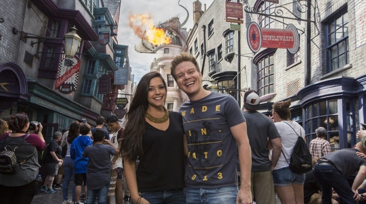 Rio - Michel Teló e Thais Fersoza curtiram uns dias de férias com a família em Orlando, nos Estados Unidos. O casal e os filhos, Melinda e Teodoro, estiveram nos parques da Universal, com o The Wizarding World of Harry Potter - Diagon Alley, uma das duas áreas dedicadas ao famoso bruxo dentro do complexo.