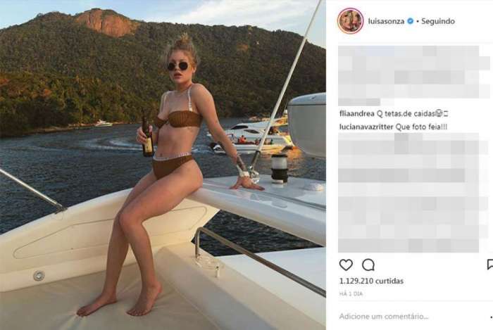 Nesta quarta, Luiza voltou a postar uma foto de biquíni. Dessa vez, mostrando o bumbum. "Cadê todo mundo para elogiar também?", perguntou um seguidor que havia acompanhado a polêmica sobre os seios de Luisa.
