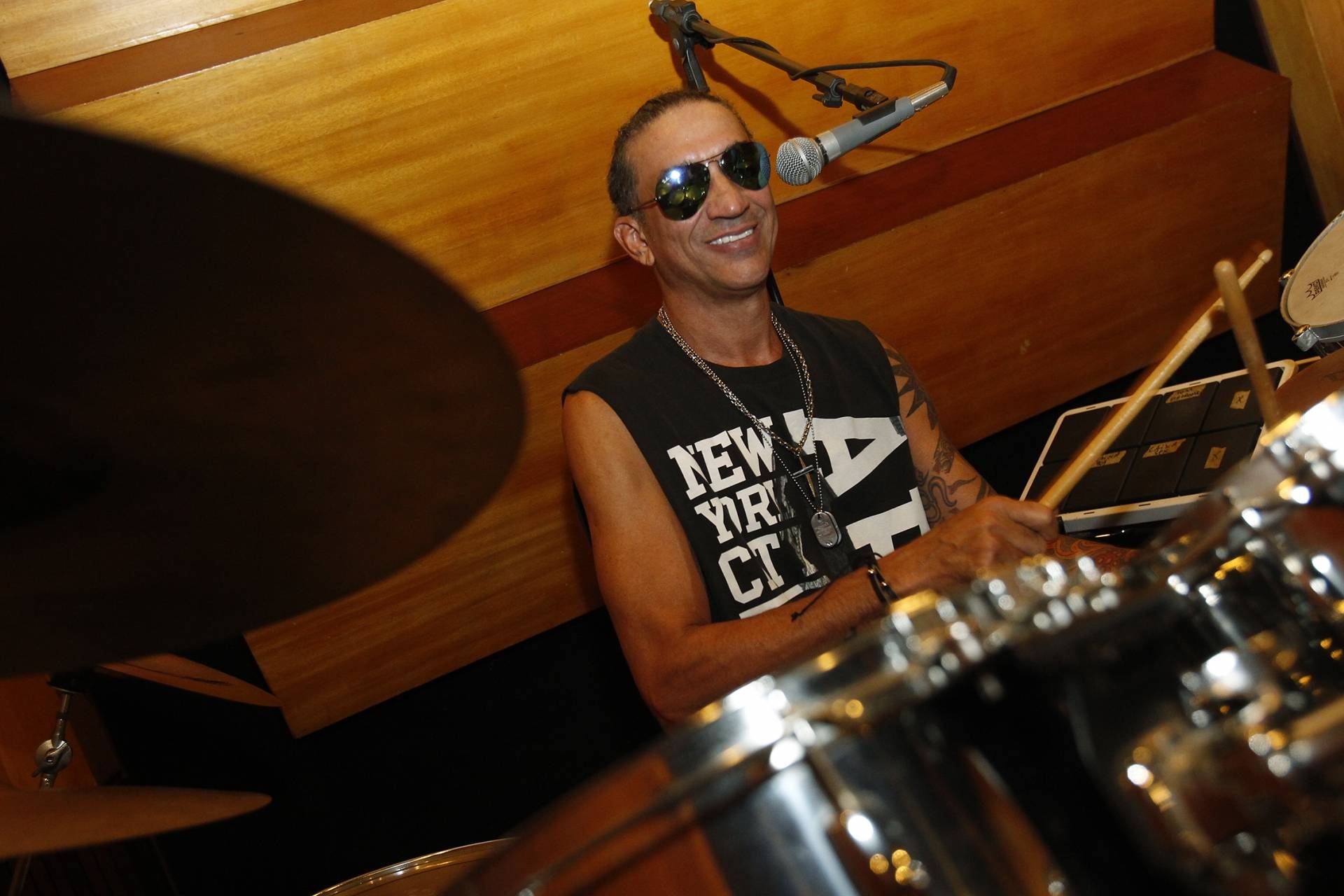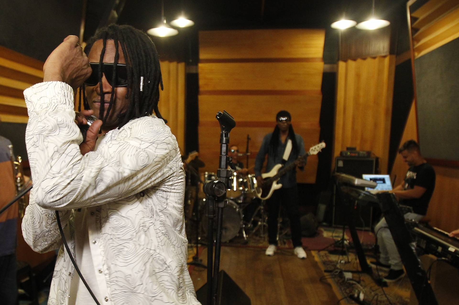 10/04/2019 - Entrevista com Toni Garrido, Bino Farias e Lazao, integrantes da banda de Reggae Cidade Negra, no estudio Be Happy, em Botafogo, onde o grupo ensaiava para os proximos shows. Foto de Alexandre Brum / Agencia O Dia - CIDADE MUSICA SHOW ENSAIO ARTE CULTURA REGGAE ESTUDIO GRAVACAO - Alexandre Brum / Agencia O Dia