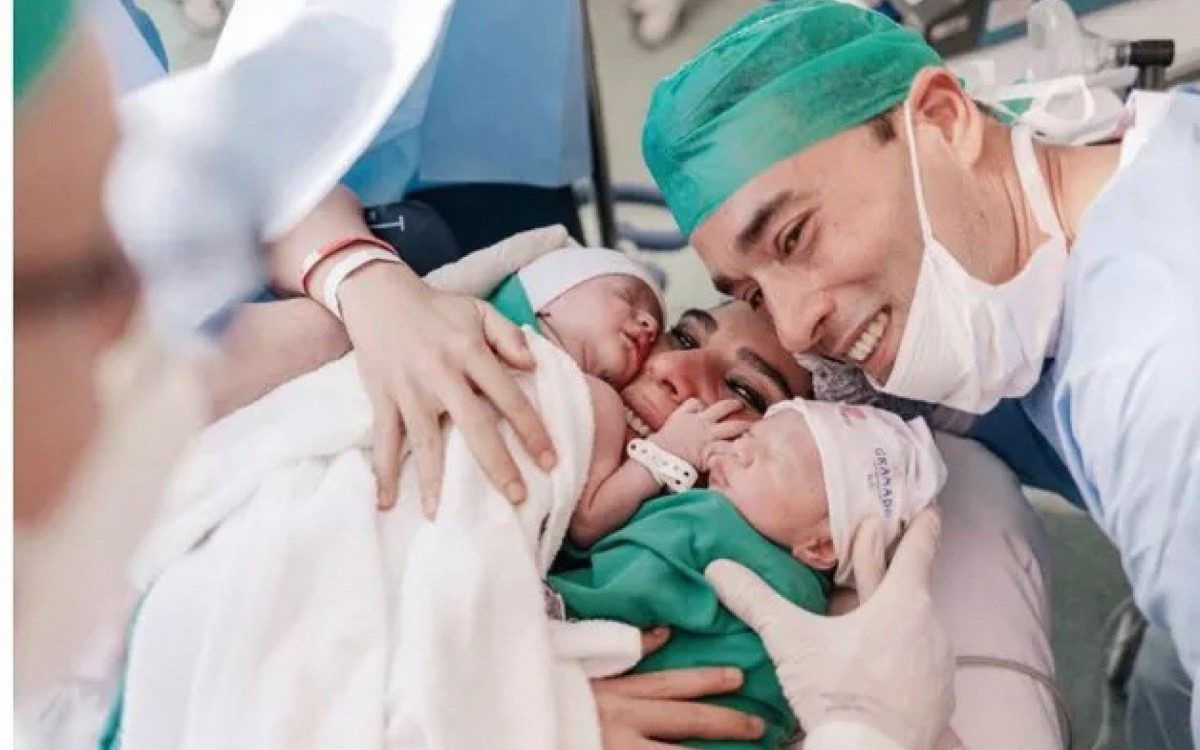 "Vi um pai nascer, o melhor amigo e marido que eu poderia ter. O amor da minha vida em looping, que eu via por um pano azul no dia mais importante da minha vida. Vi o pai nascendo e que me furou, vendo tudo acontecer em tempo real e eu, tremendo e chorando, só o ouvia narrar os acontecimentos: 'vem, Pedro, vem, João!'. Chegamos em dois, saímos em quatro da maternidade, com aquela sensação de 'meu Deus, agora é com noix, né?'", relatou ela na publicação.