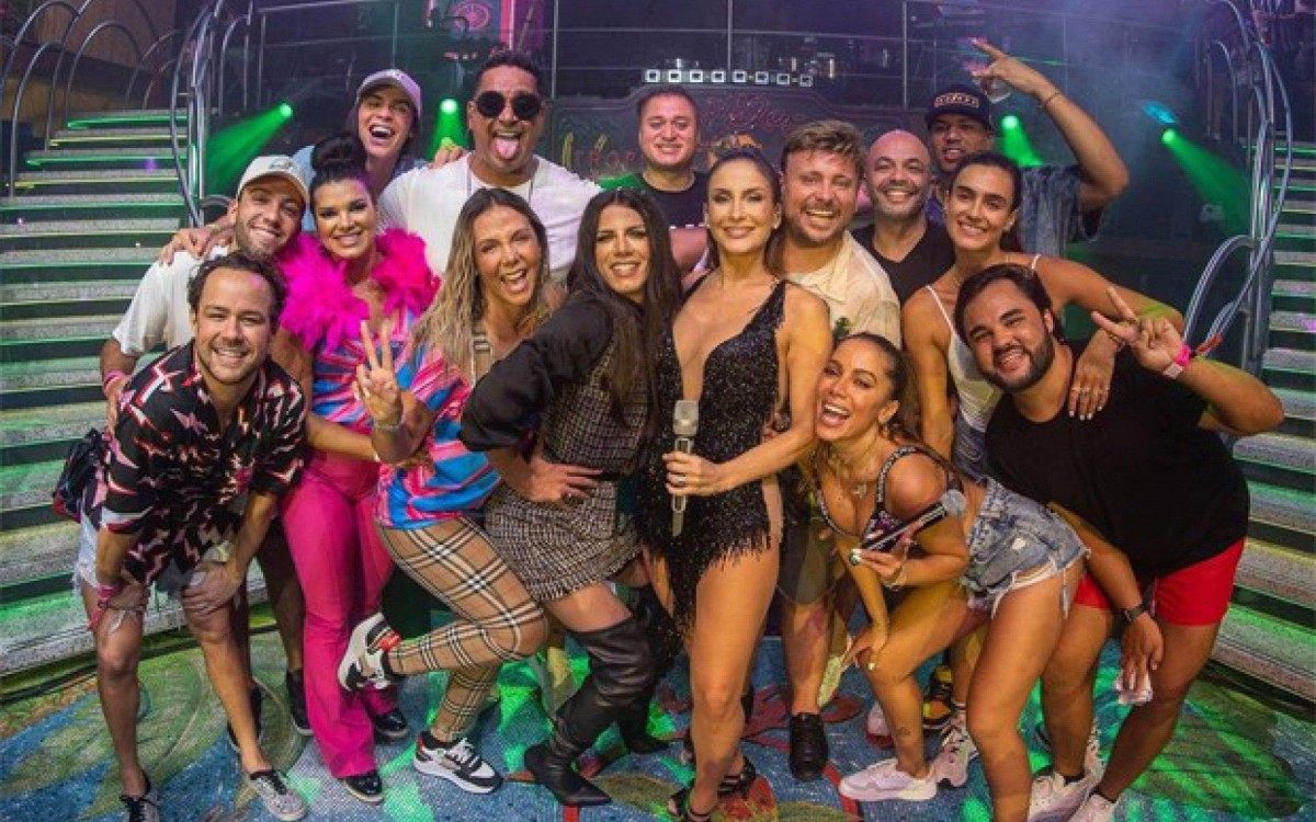 Já no palco da casa de show, ela chamou Anitta para cantar hits de sua carreira solo, mas também da época do Babado Novo como “Bola de Sabão”. Em seguida, Carla Perez apareceu e levou os sucessos do É o Tchan, grupo de axé do qual foi dançarina entre 1995 e 1998, para os presentes . Xanddy foi quem completou a festa e subiu ao palco para cantar as músicas do Harmonia do Samba.
