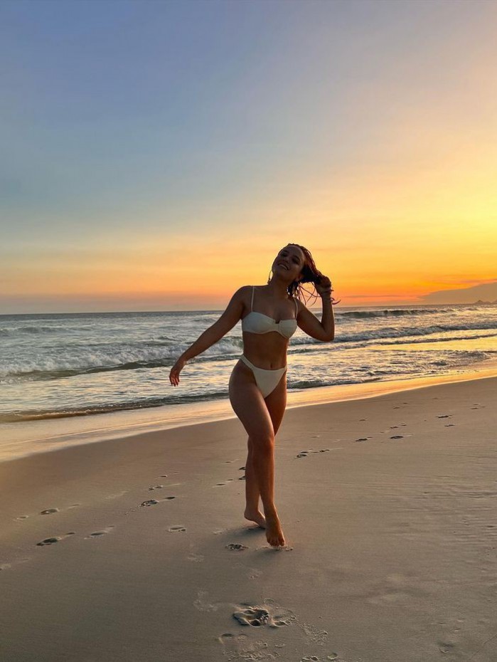 No registro, a estrela mostrou aparece vestindo um biquíni branco moderninho, que valorizou as curvas da atriz, de 21 anos. Sorrindo para a câmera, Larissa Manoela aproveitando o momento na natureza. "Mar doce lar", escreveu ela na legenda da postagem, que em poucos minutos já contava com diversos elogios de fãs.