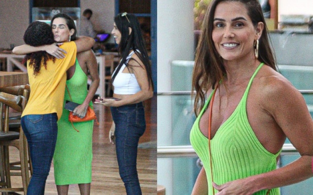 Acompanhada de uma amiga, Deborah, que também atuou como apresentadora do programa "Tá Na Copa", do SporTv, durante a Copa do Mundo do Catar, apostou em um vestidinho longo verde-limão e sandálias de salto alto vermelhas. Ao perceber que era clicada, ainda sorriu e acenou para os fotógrafos.