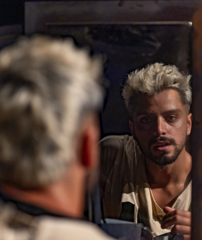 Com questionamentos profundos sobre medo e liberdade, o espetáculo tem figurino assinado por Claudio Tovar e mostra Simas em devoção total ao personagem. Seja tingindo o cabelo para a estreia em São Paulo, ou vestindo nada mais que um cinto de castidade em uma das cenas, ficando seminu na frente da plateia. Para o artista, os limites para a entrega podem variar. "Depende de até onde o ator está disposto a chegar. Cada um é um. Na minha vida, acredito que quanto mais vulnerável e disponível estamos, mais completamente conseguimos vivenciar cada persona", explica.