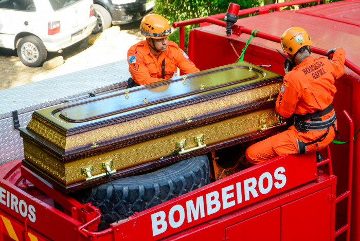 Caixão de Robson Gracie deixou o Palácio da Cidade e seguiu para o cemitério São João Batista onde o lutador foi sepultadoWebert Belicio - Agnews