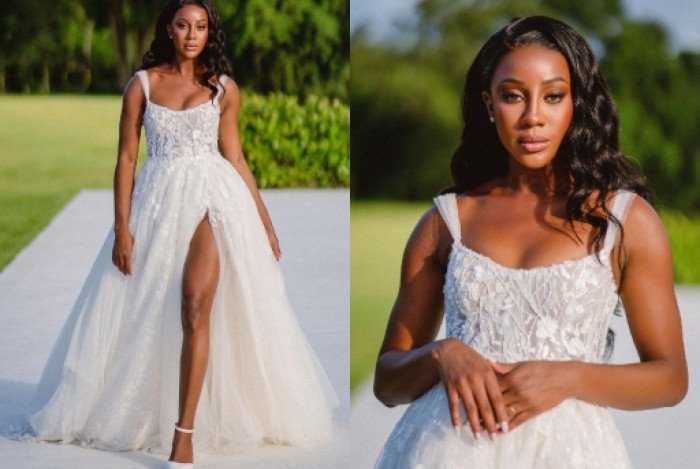 Camilla de Lucas surgiu deslumbrante em suas redes sociais ao compartilhar detalhes do vestido de noiva que escolheu para trocar alianças com o músico Mateus Ricardo, mais conhecido como Blecaute, na tarde deste sábado, no Rio. Para a hora do "sim",a vice-campeã do "Big Brother Brasil 21", da Globo, optou por um modelo branco com alças e renda em desenho de flores e decote canoa da estilista Morena Andrade.