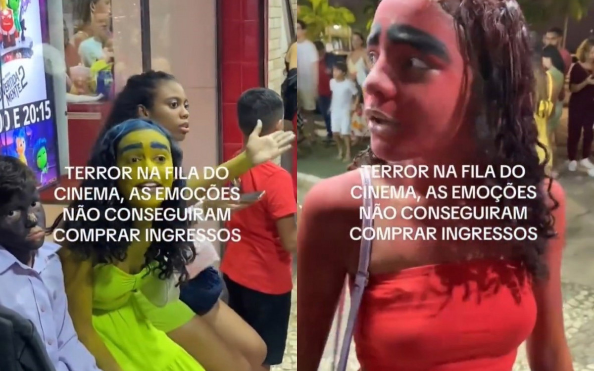 Rio - Um vídeo de um grupo de amigos fantasiados das "emoções" do desenho "Divertida Mente 2" viralizou nas redes sociais, nesta sexta-feira (28). As imagens mostram os fãs revoltados por não conseguirem comprar ingresso para assistir à animação no cinema.