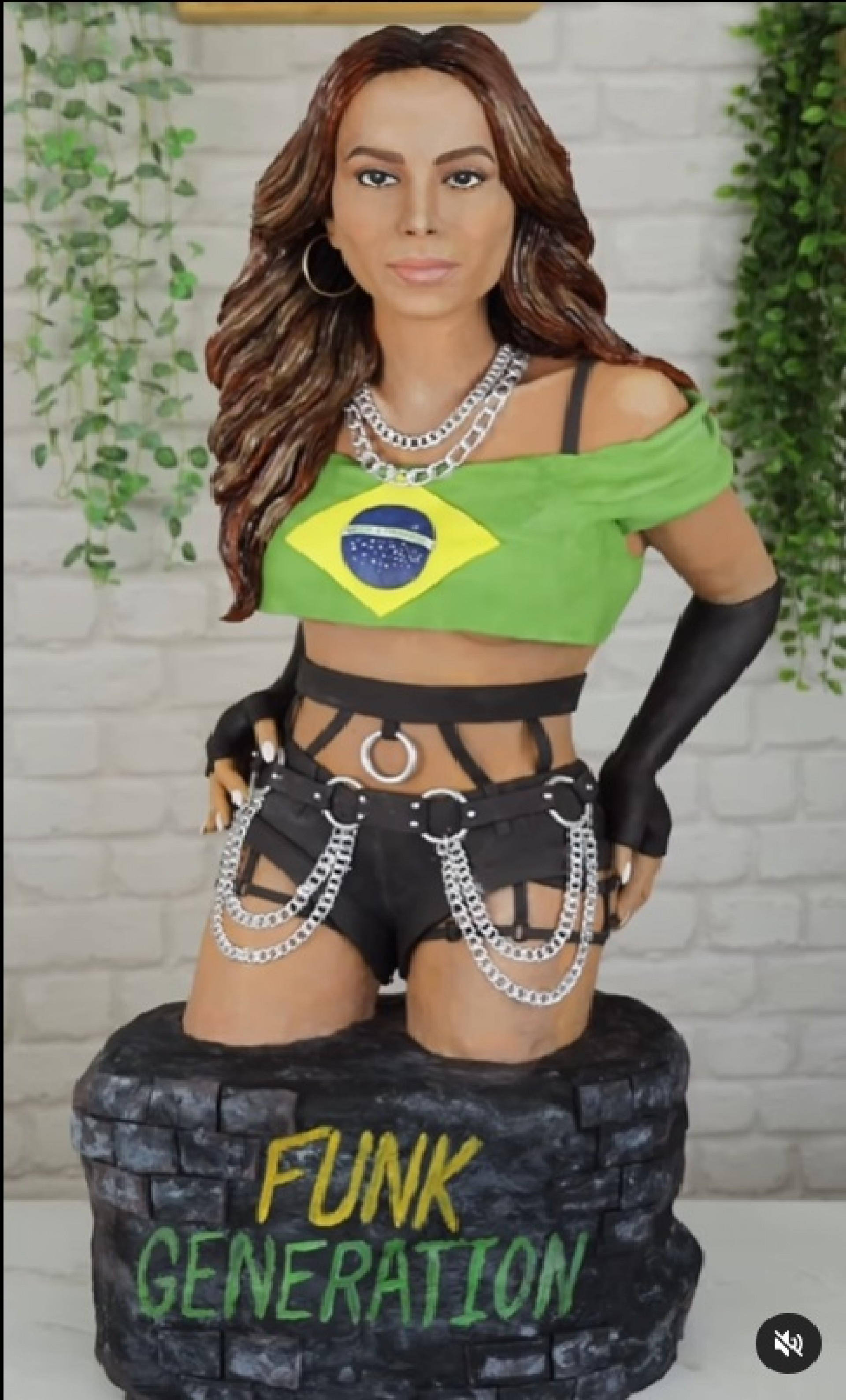 PublicidadeNo bolo, a poderosa aparece quase de corpo inteiro, vestindo um top com a bandeira do Brasil e um shortinho todo vazado com correntes. Na base, está escrita a frase "Funk Generation", nome do mais recente álbum da cantora.