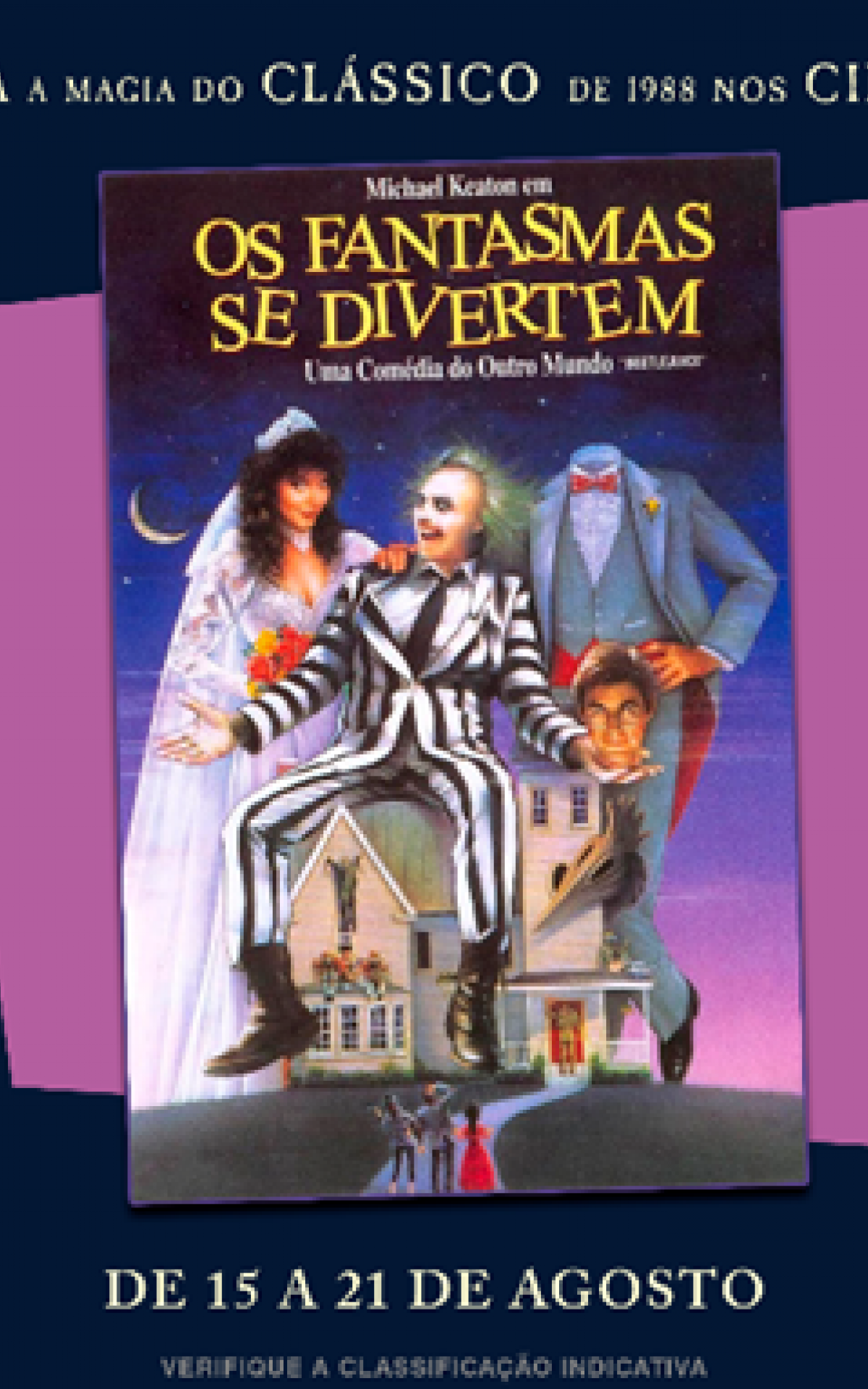 Rio - O filme "Os Fantasmas Ainda Se Divertem: Beetlejuice Beetlejuice" chega aos cinemas no dia 5 de setembro, porém, antes, os fãs poderão se aquecer revendo o clássico de 1988. Entre os dias 15 e 21 de agosto, o primeiro filme, "Os Fantasmas Se Divertem", será reexibido nas telonas.