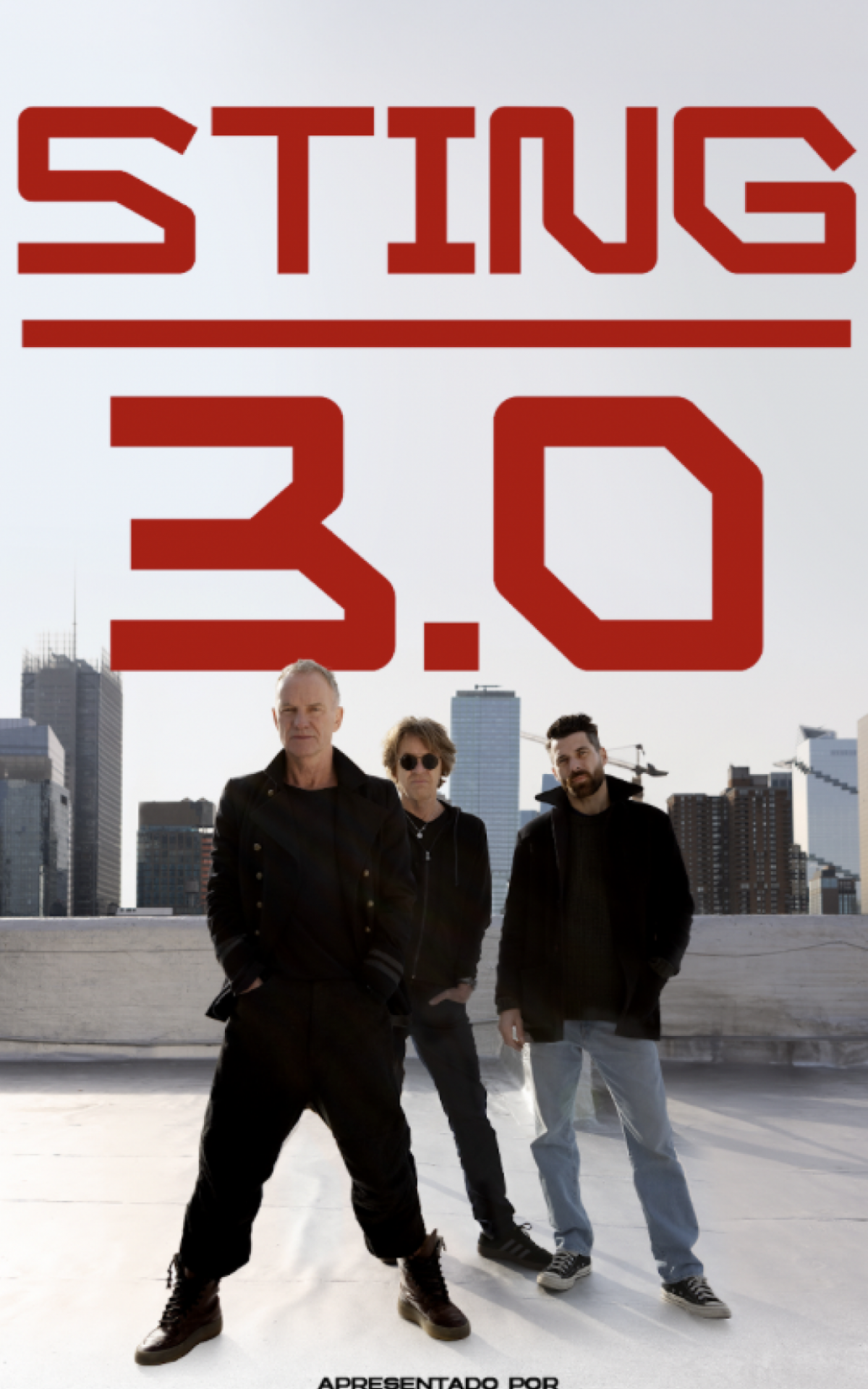 Rio - Ex-vocalista do The Police, Sting fará três shows da turnê "STING 3.0" no Brasil em 2025. Acompanhado do guitarrista Dominic Miller, e do baterista dinâmico Chris Maas (Mumford & Sons, Maggie Rogers), o cantor se apresentará no Rio de Janeiro, no dia 14 de fevereiro (Farmasi Arena), dia 16 em São Paulo (Parque Ibirapuera) e no dia 18 de fevereiro em Curitiba (Pedreira Paulo Leminski).