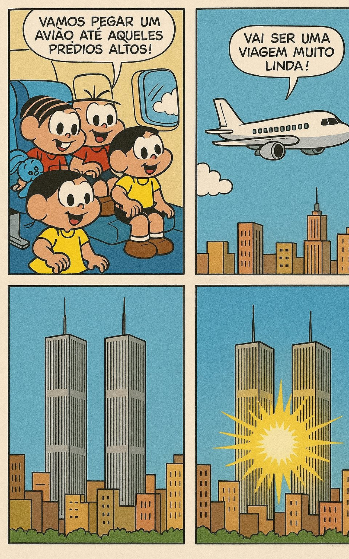 O uso das imagens de Mônica, Cebolinha e cia também causou polêmica por associar os personagens a pessoas e situações controversas. Uma das tirinhas feitas por IA zombava dos ataques terroristas de 11 de setembro de 2001 às Torres Gêmeas em Nova York. Outra fazia piada com a morte do rapper americano Lil Peep, que sofreu uma overdose acidental em 2017.