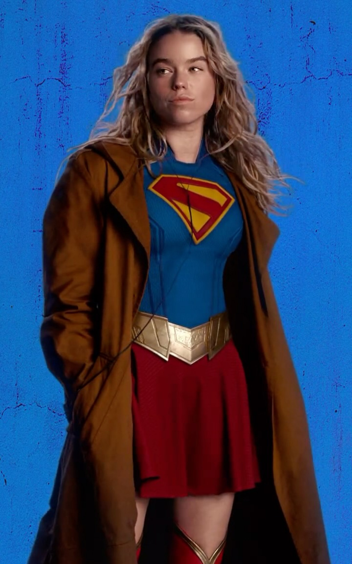 O longa marca a primeira aventura solo da prima do Superman nas telonas. O pôster divulgado faz uma brincadeira com a estética usada na campanha de “Superman”, mas apresenta uma Kara Zor-El menos certinha que o primo. A heroína aparece com o traje clássico, um sobretudo escuro, uma bebida azul nas mãos e os dedos manchados de vermelho, lembrando sangue.