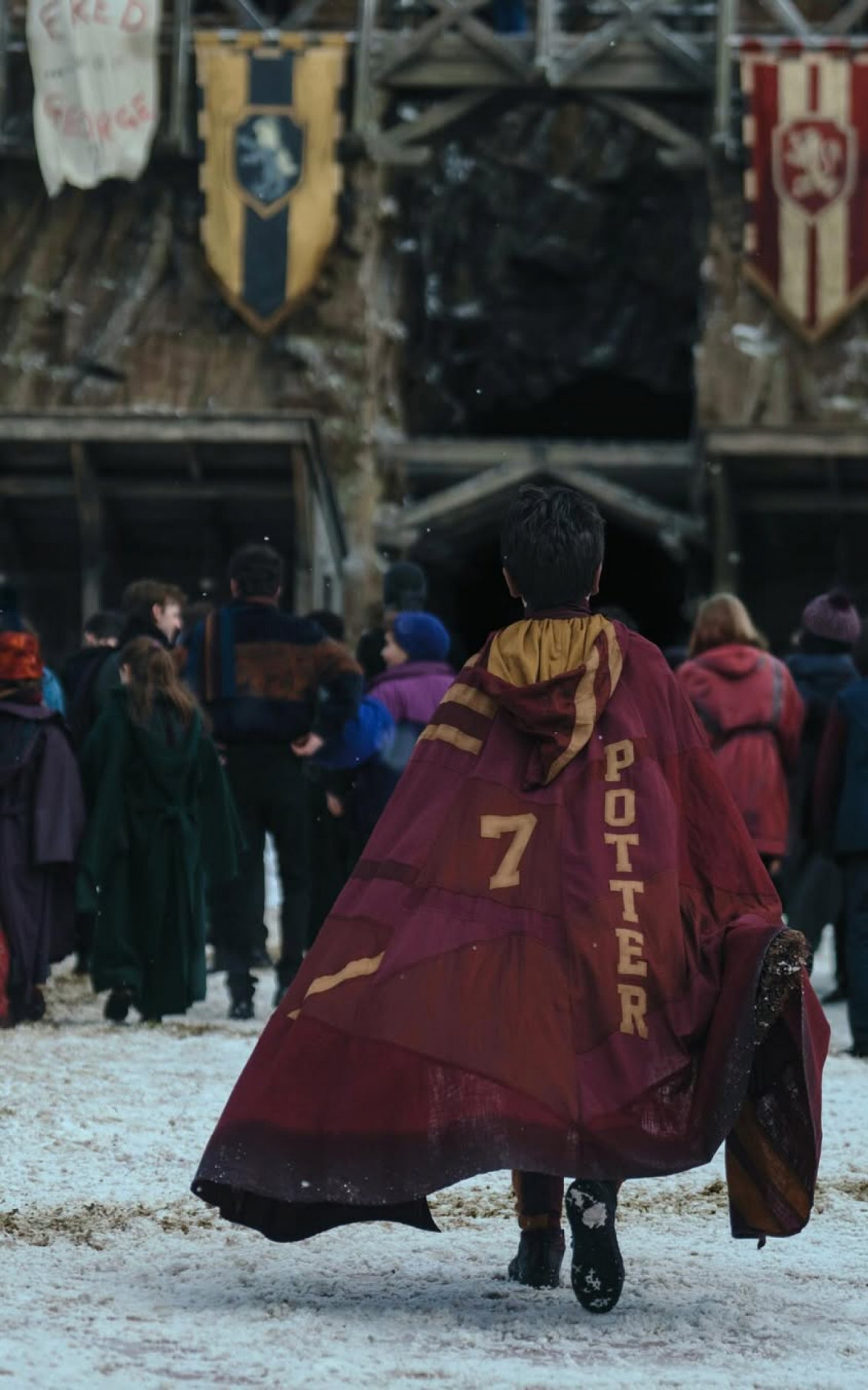 No registro, o ator Dominic McLaughlin aparece de costas, caracterizado como o protagonista, com o uniforme de Quadribol da Grifinória e uma vassoura nas mãos.